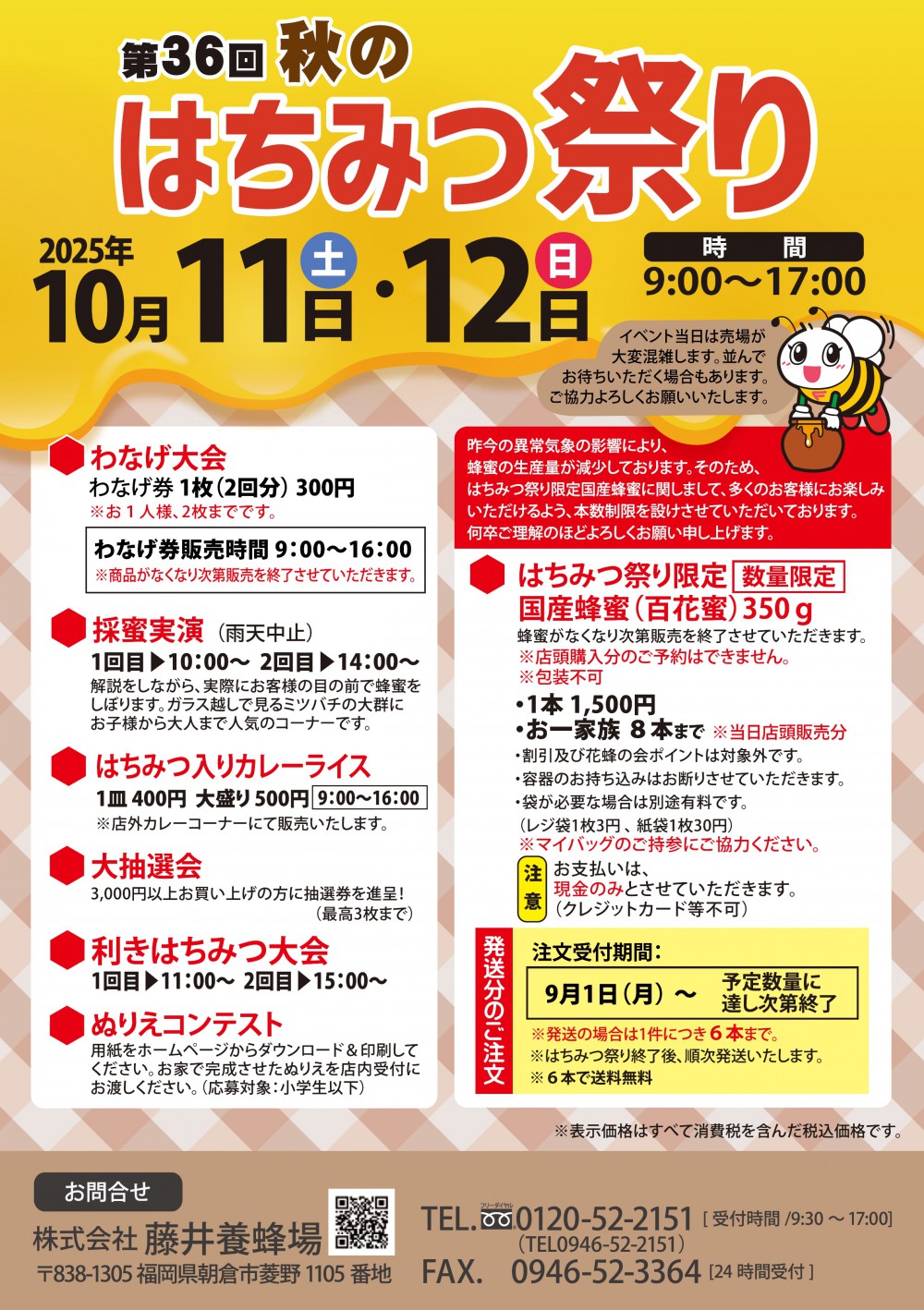 10月11日・12日に「はちみつ祭り」を開催いたします。