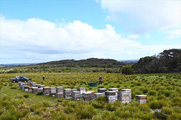 カンガルー島は、オーガニックはちみつの生産地として世界的に知られる島です。1885年、州政府によってミツバチ保護区に指定されて以来、100年以上にわたりリグリアンミツバチの系統を守り続けています。ミツバチの病気や外部からの感染を防ぐため、ミツバチ関連のあらゆる生産物や花粉、養蜂器具に至るまで、島への持ち込みは禁止されています。アデレードの南西に位置するカンガルー島は、総面積4,430平方キロメートルで、オーストラリアで3番目に大きな島です。東京都の約2倍の広さを持ち、本島から隔絶されていたことで開発や外来種の影響を受けず、オーストラリア固有の貴重な動植物が数多く残されています。島内には1つの国立公園と23の自然保護区が点在し、約890種の固有植物が生息。そのうち250種はすでに学術的に確認されています。春から夏(8~11月)にはワイルドフラワーが咲き乱れ、島の景観を鮮やかに彩ります。このように、カンガルー島は「世界で最もミツバチにとって安全な島」ともいわれています。藤井養蜂場は9年間にわたり10度訪問し、生産者と強い信頼関係を築いてきました。現在はNASAA認証を受けたオーガニックはちみつを輸入しており、春先の花々やユーカリの花を蜜源とした、コクと深みのある味わいが特徴です。