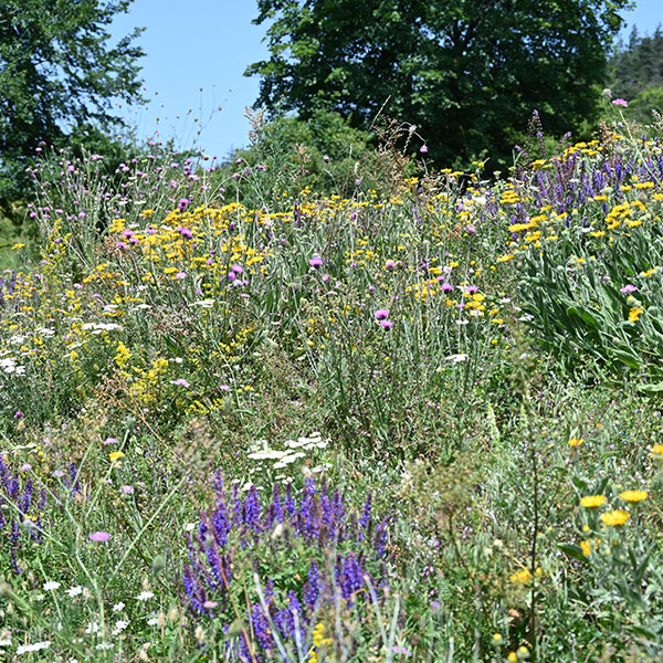 菜の花やアカシアに加え、BALKAN BIOCERT認証を受けたオーガニックはちみつなどを輸入しています。バラとヨーグルトで知られるブルガリアは、バルカン半島に位置し黒海に面する農業国です。養蜂家のネシェフ氏は、九州大学大学院経済学研究科に留学した経験を持ち、金融関係の仕事を経て、オーガニックはちみつの生産に転身しました。日本市場をオーガニックはちみつの販売先に選び、ある生協を通じて藤井養蜂場との交流が始まりました。EUにおけるオーガニック認証のルールはほぼ共通ですが、ブルガリアでは特に厳格に運用されています。オーガニックアカシアはちみつは、ブルガリアを東西に走るバルカン山脈北側の山間部で生産されます。日本産アカシアはちみつに比べ、ブルガリアのアカシアは濃厚でありながら、すっきりと気品ある甘さが特徴です。その味わいは日本人の嗜好にもよく合い、国産はちみつの生産量が減少している現在、藤井養蜂場にとっても大変貴重なはちみつとなっています。また、アカシアの花が終わる7月後半から8月にかけては、約50種類以上といわれる多様なハーブが咲き誇ります。ブルガリアは「ハーブ大国」としても知られ、古くからその自然治癒力を生活に取り入れてきました。現地を訪れると、山麓一帯に無数のハーブの花が咲き広がり、圧倒されるほどです。こうしたハーブから採れるはちみつは、まろやかな風味で日本人の口にも合い、とても美味しいと高く評価されています。