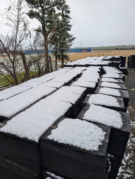 トラックは滑りそうになるし巣箱の上の雪はガチガチに凍るしで作業がやりづら。